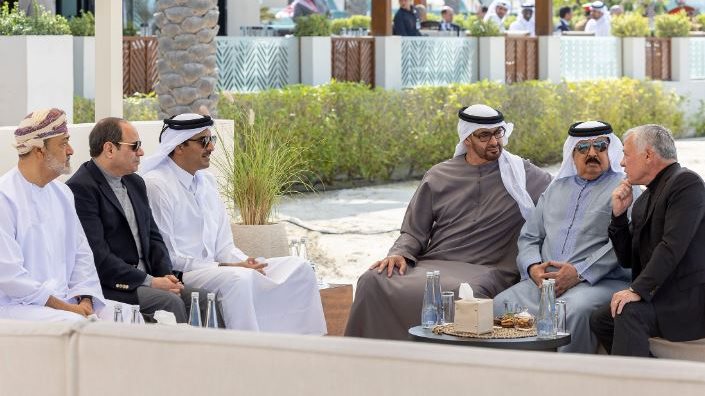 واستضاف الشيخ محمد بن زايد آل نهيان رئيس دولة الإمارات" اليوم الأربعاء، لقاء أخويا تشاوريا مع إخوانه قادة الدول الشقيقة كل من السلطان هيثم بن طارق سلطان عمان والملك حمد بن عيسى آل خليفة عاهل مملكة البحرين والشيخ تميم بن حمد آل ثاني أمير دولة قطر والملك عبد الله الثاني بن الحسين عاهل المملكة الأردنية الهاشمية والرئيس عبدالفتاح السيسي رئيس جمهورية مصر العربية الشقيقة .