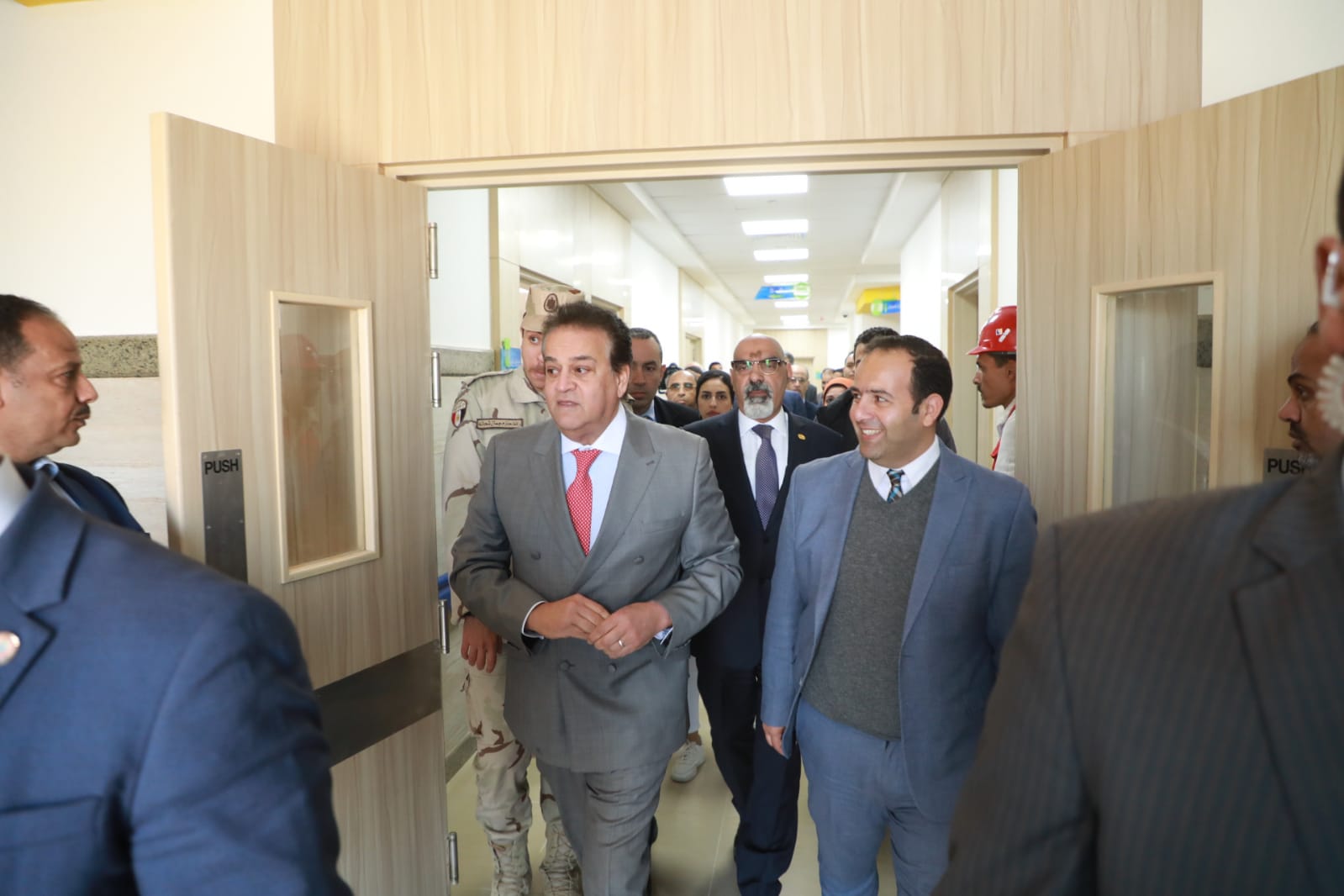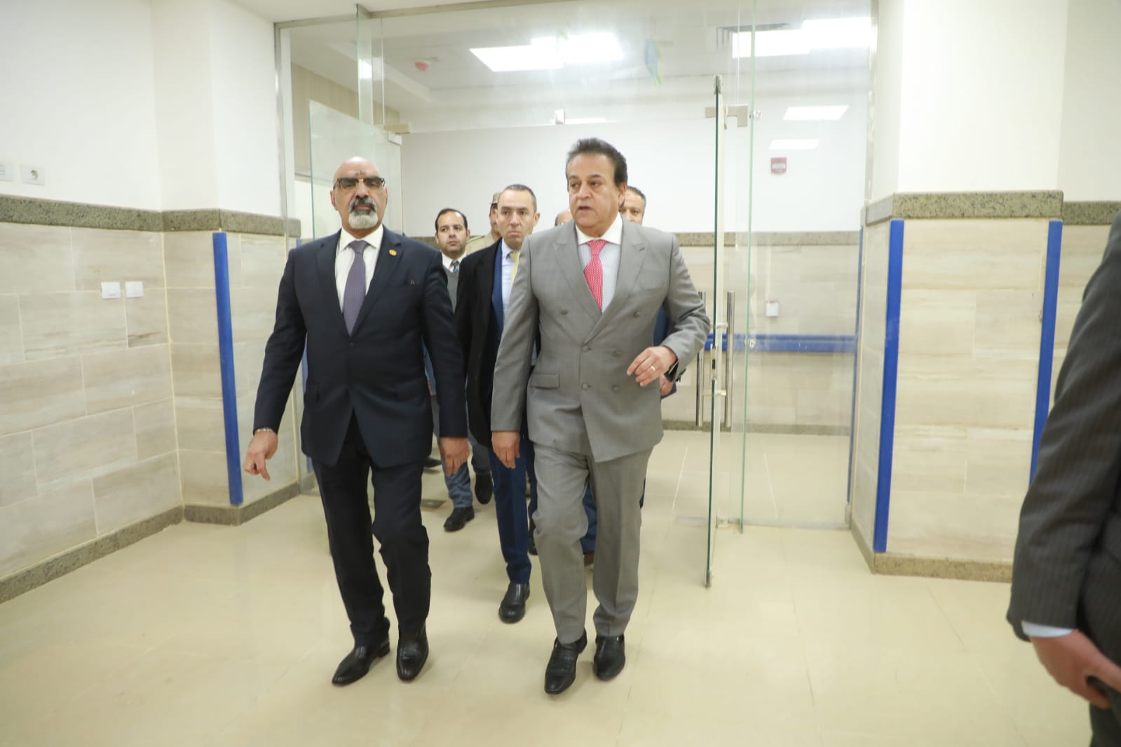 رافق الوزير خلال جولته الدكتور أنور إسماعيل مساعد وزير الصحة والسكان للمشروعات القومية، والدكتور محمد ضاحي رئيس الهيئة العامة للتأمين الصحي، والدكتور رمزي منير مدير الإدارة العامة للمكتب الفني بهيئة التأمين.