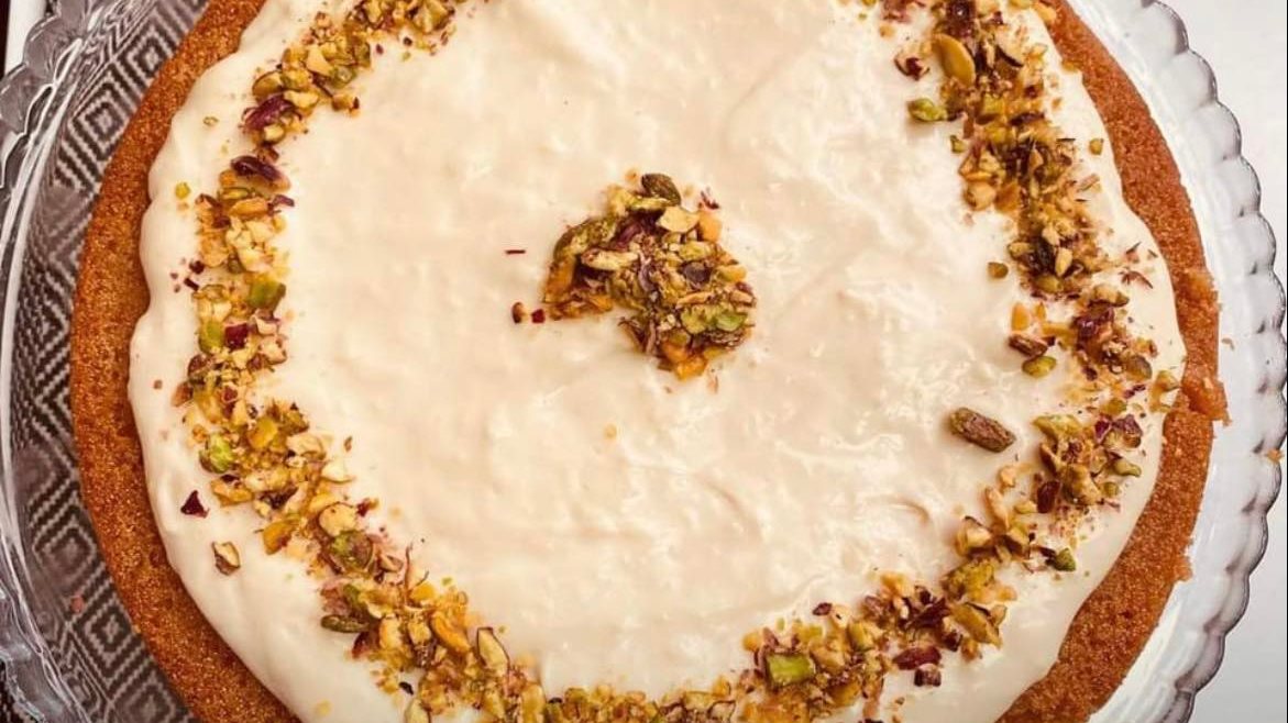 5- وزّعي الفول السوداني على وجه البسبوسة.