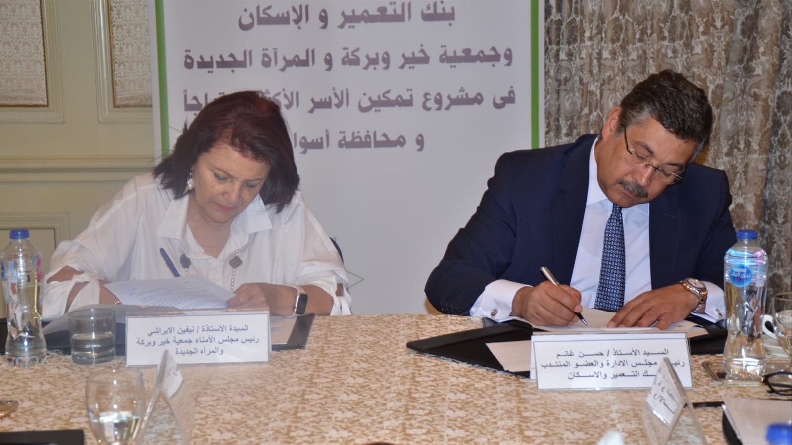 قام بنك التعمير والإسكان وجمعية خير وبركة والمرأة الجديدة بتوقيع بروتوكول تعاون مشترك لتنفيذ مشروع" التمكين الاقتصادي والاجتماعي للأسر الأكثر احتياجاً بمحافظة أسوان"، بهدف الارتقاء بالأوضاع الاقتصادية والاجتماعية وتعزيز ثقافة الشمول المالي لعدد 200 من الأسر الواقعة تحت خط الفقر بثلاثة قرى بمحافظة أسوان وهم (قرية المنشية الجديدة-قرية سبيل العرب-قرية الرغامة)، وذلك ضمن المبادرة الرئاسية "حياه كريمة" على مستوى جميع محافظات الجمهورية، بإجمالي مساهمات للمشروع بأكثر من 4 مليون جنيه.