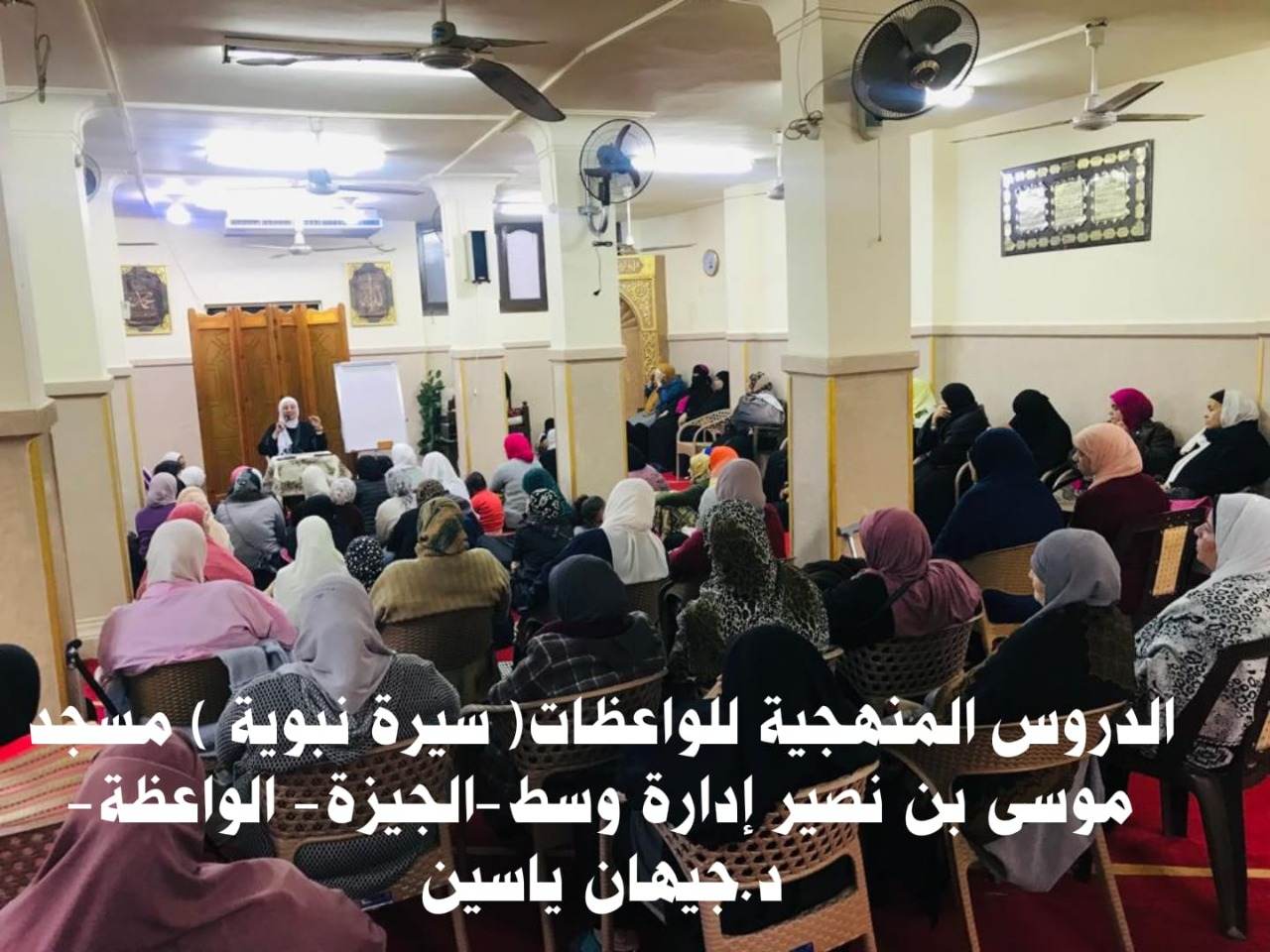 ومن مسجد موسى بن نصير بالجيزة، أقيم الدرس المنهجي للواعظة/ جيهان يس في مادة السيرة والتاريخ.