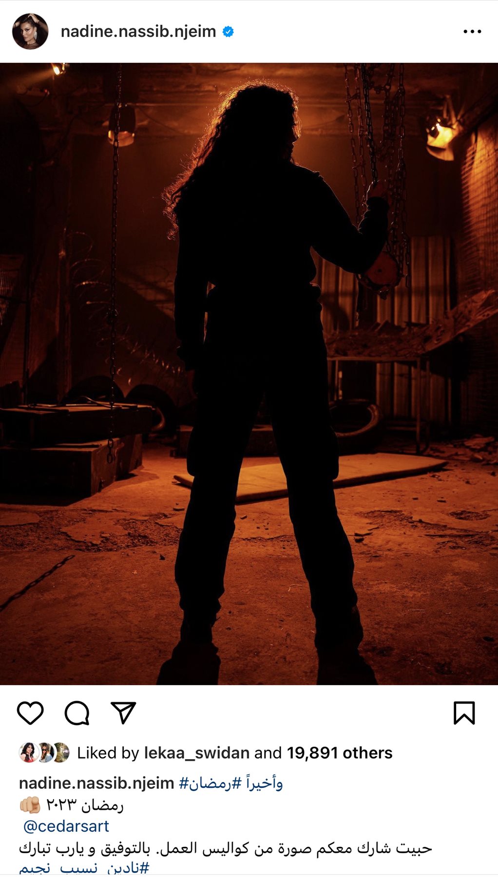 شوقت الفنانة نادين نسيب نجيم، المتابعين لعملها الدرامي في موسم رمضان 2023، وذلك عبر حسابها الشخصي بموقع التواصل الاجتماعي “انستجرام”.