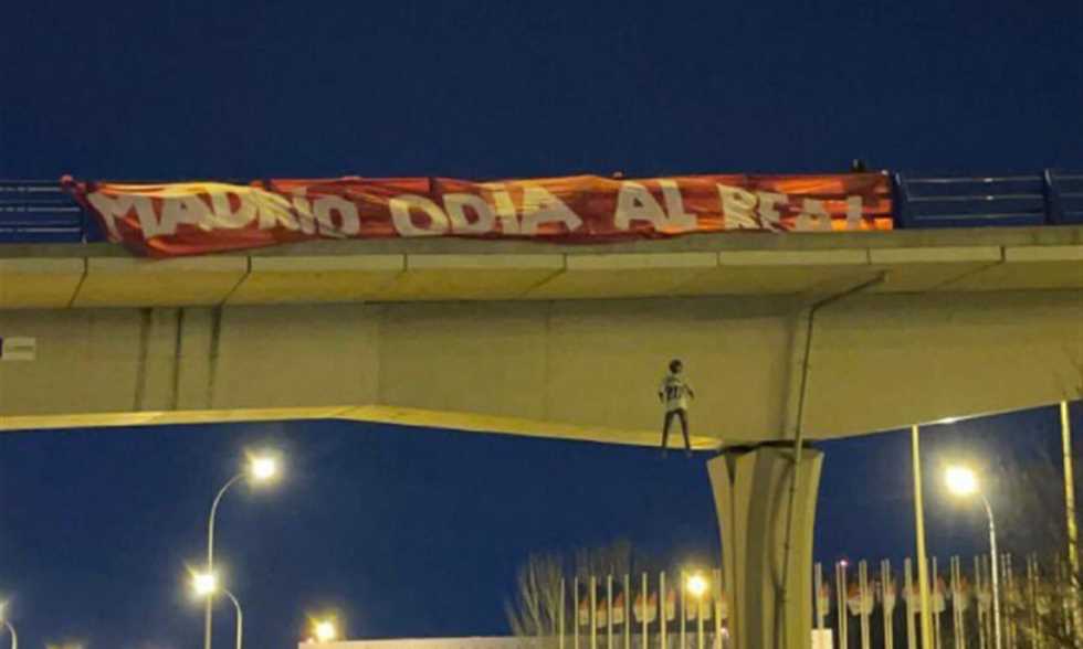 وقام عدد من جماهير أتلتيكو مدريد برفع لافتة تحمل “مدريد تكره ريال”، وبجانبها دمية مشنوقة تحمل قميص فينيسيوس جونيور.
