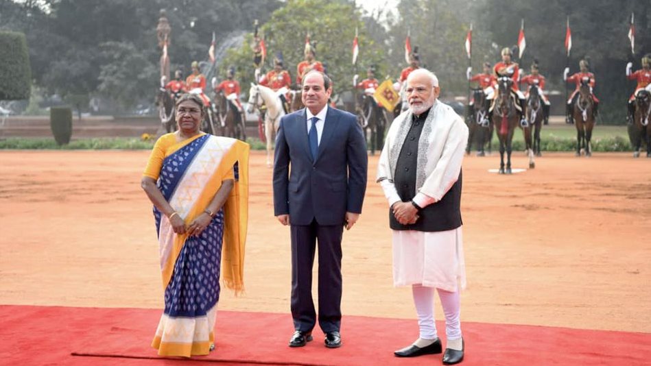 يجري الرئيس السيسي، خلال الأيام الجارية زيارة إلى الهند، للمشاركة كضيف شرف في يوم الجمهورية، ويشارك على هامش ذلك في العديد من الفعاليات ويعقد اللقاءات مع المسئولين الهنود لمناقشة سبل تعزيز الشراكة بين مصر والهند، كما شارك أمس في العاصمة نيودلهي في اجتماع موسع لرؤساء كبرى الشركات الهندية ورجال الأعمال الهنود، وبمشاركة بيوش جويال وزير التجارة والصناعة بالهند.
