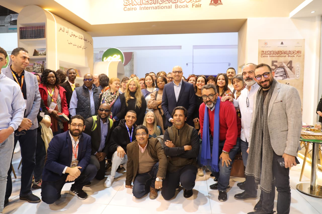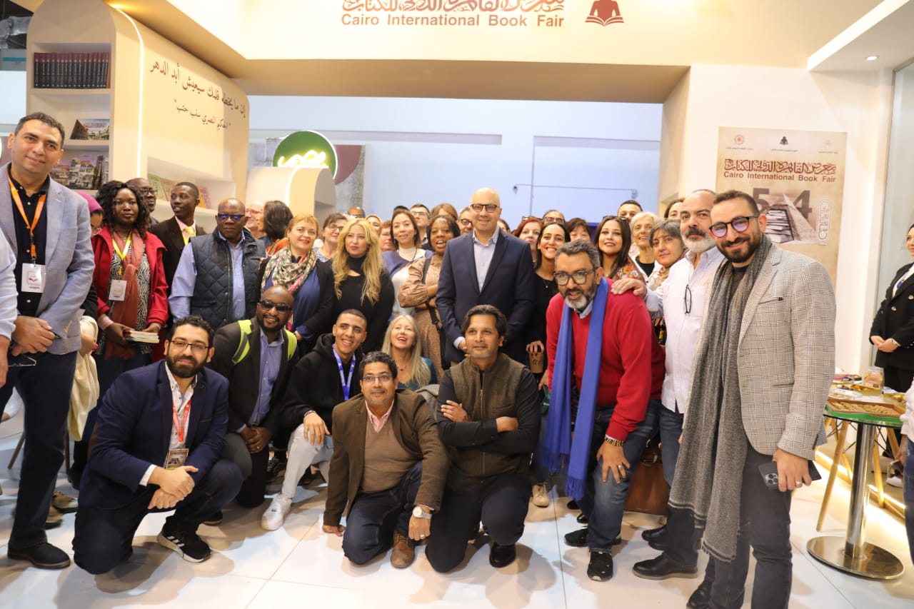 استقبل جناح الهيئة المصرية العامة للكتاب، بمعرض القاهرة الدولي للكتاب في دورته الـ 54، صباح اليوم، السبت، أعضاء فريق برنامج “Cairo Calling.. القاهرة تنادي”، الذي تنظمه الهيئة، بالمعرض المنعقد الآن بمركز مصر للمعارض الدولية،للناشرين الأجانب ضمن فعاليات البرنامج المهني "برديات 2".