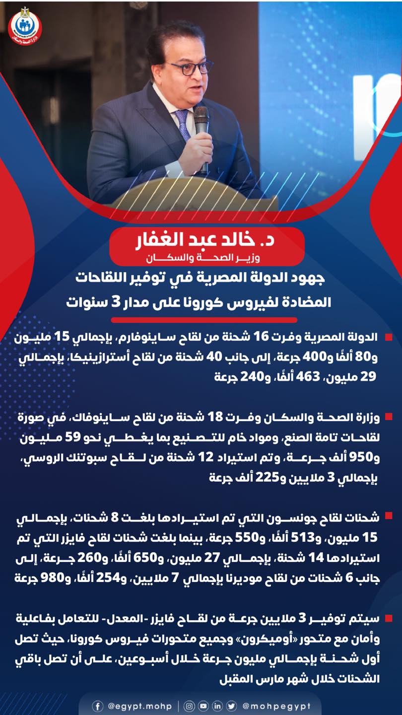 بذلت الدولة المصرية جهودا في توفير اللقاحات المضادة لفيروس كورونا المستجد، منذ بداية تفشي المرض في جميع دول العالم وحتى اليوم، وذلك بناء على توجيهات الرئيس عبدالفتاح السيسي، رئيس الجمهورية، ضمن جهود الدولة المصرية للحفاظ على مكتسباتها في مواجهة الجائحة.