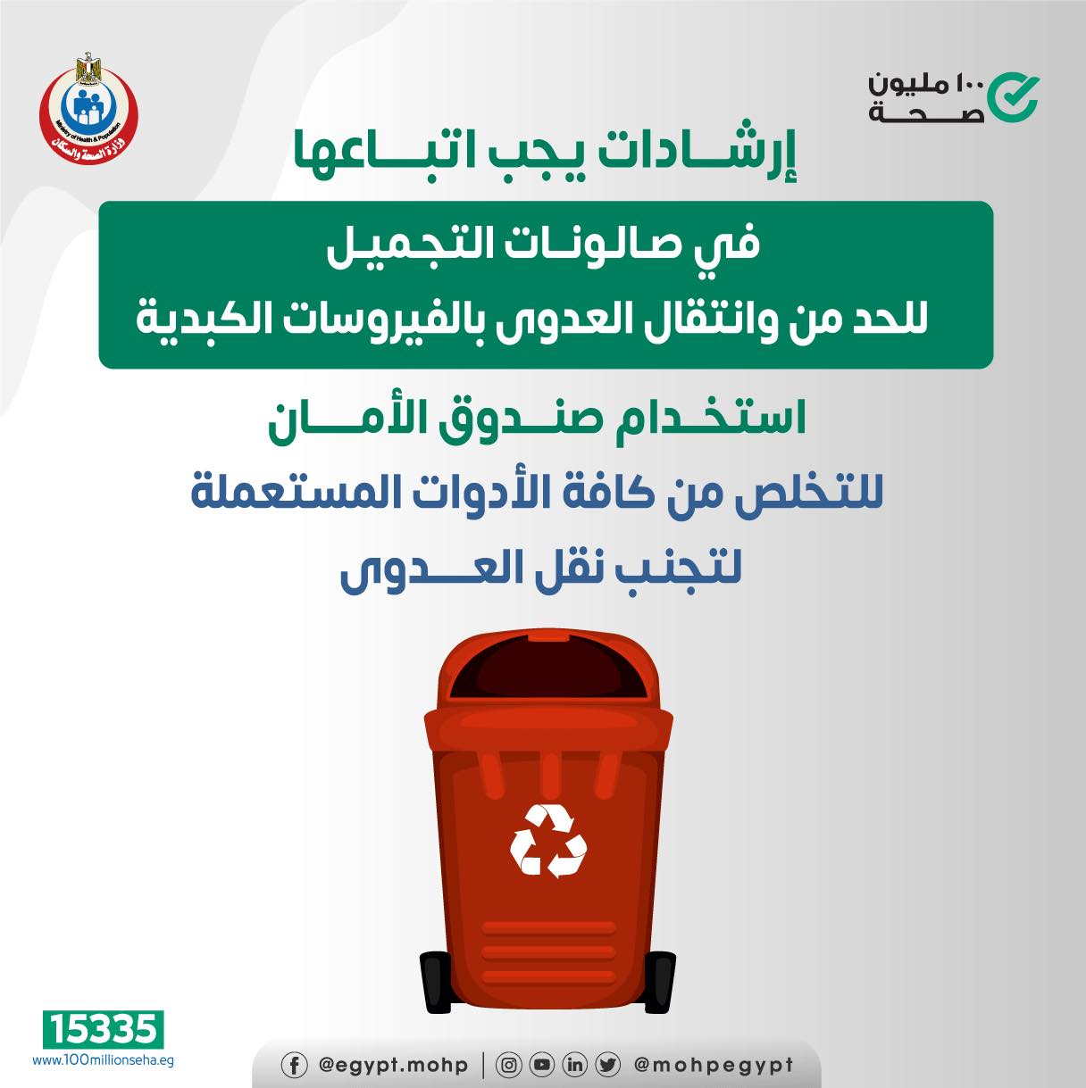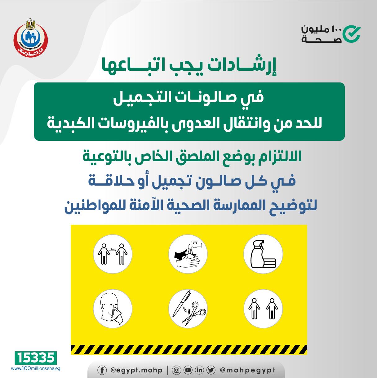 نشرت وزارة الصحة والسكان مجموعة من الإجراءت الواجب اتباعها للحد من انتقال العدوى بالفيروسات الكبدية داخل صالونات التجميل ، والتي تتمثل في التالي