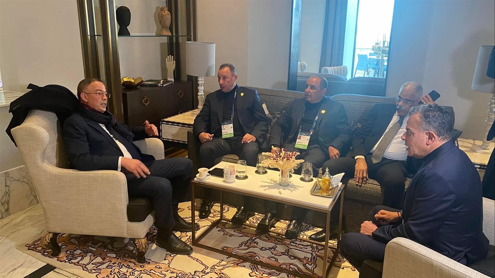 والتقي لقجع في حضور جمال علام رئيس الإتحاد المصري لكرة القدم مع محمود الخطيب رئيس النادي وبعثة الفريق الأحمر قبل التوجه لملعب مواجهة أوكلاند سيتي .