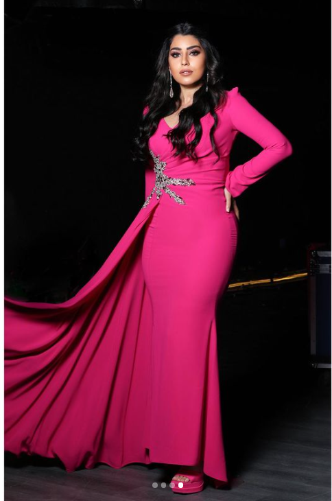 وظهرت الفنانة أيتن عامر،بأطلالة انيقة ومميزة كشفت عن إنقاص وزنها بفستان باللون الفوشيا المطرز من الخصر و هو ما كشف عن نحافة خصرها .