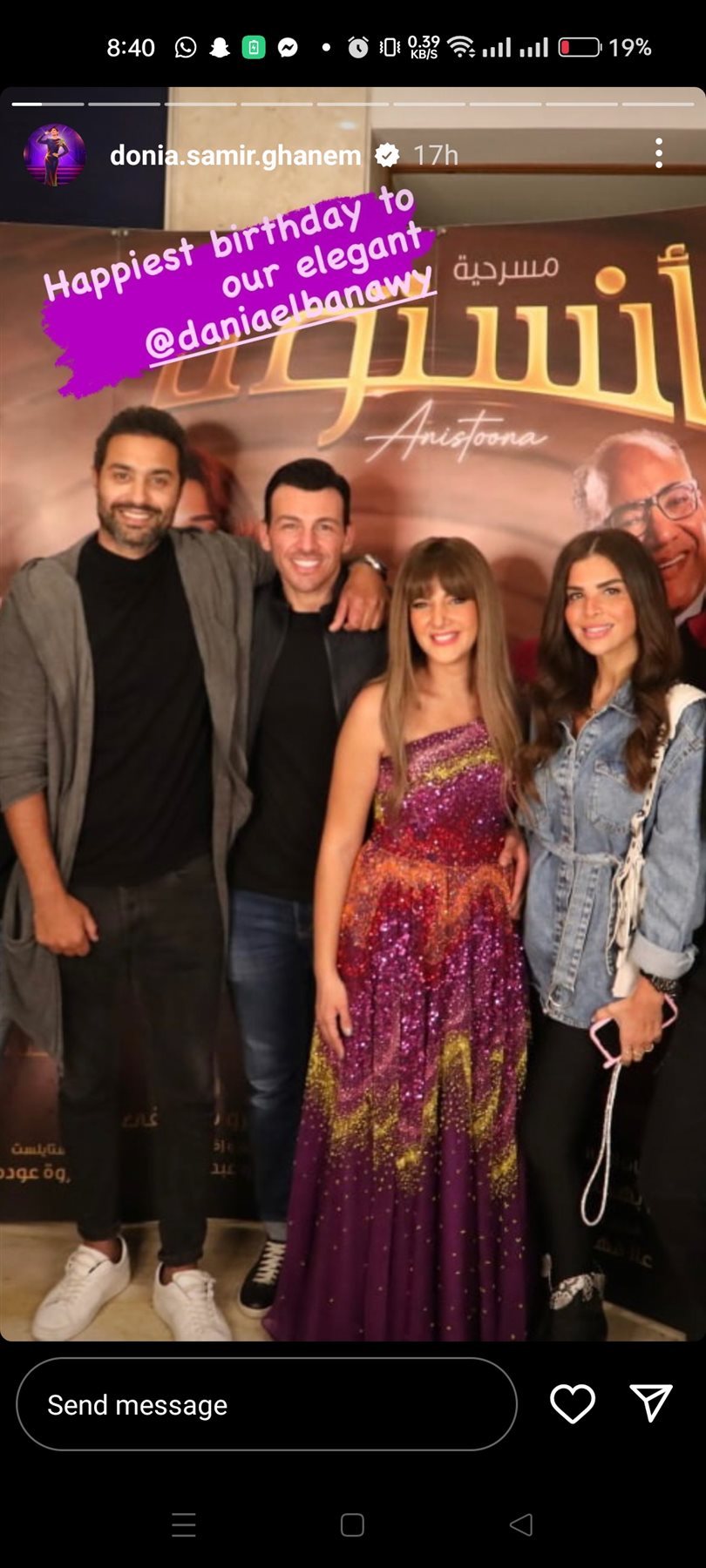 هنأت الفنانة دنيا سمير غانم زوجة الفنان كريم فهمي بمناسبة عيد ميلادها عبر صفحتها الرسمية على موقع التواصل الاجتماعي لتبادل الصور والفيديوهات القصيرة إنستجرام.