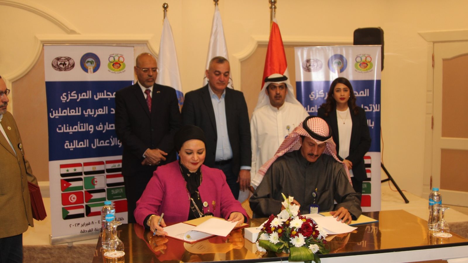 اختتم المؤتمر أعماله بقيام سولاف درويش رئيس النقابة العامة للبنوك والتأمينات بتوقيع بروتوكولات مشتركة مع رؤساء وفود المنظمات النقابية في سوريا ؛ والسودان؛ والأردن؛ والسعودية؛ واليمن؛ والكويت ؛ والبحرين ؛وفلسطين؛ خلال أعمال المؤتمر الذى افتتحه حسن شحاته وزير القوى العاملة؛ ونائب محافظ البحر الأحمر.