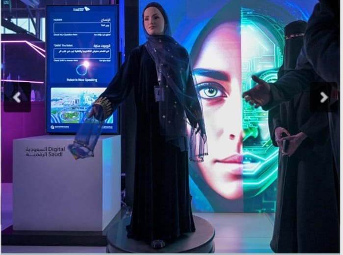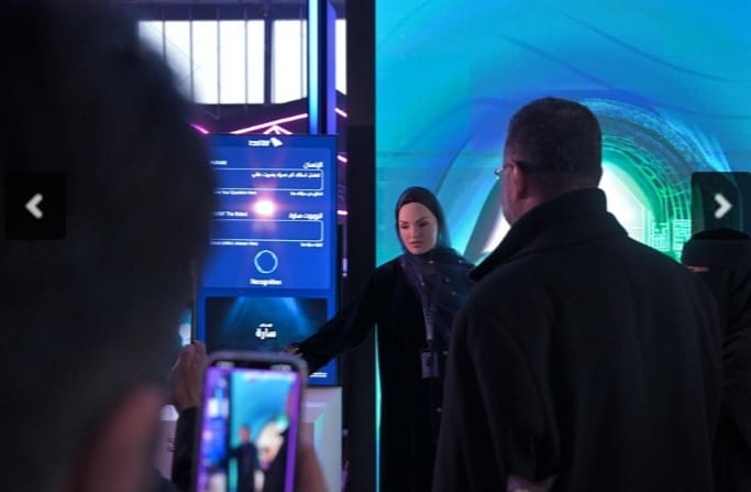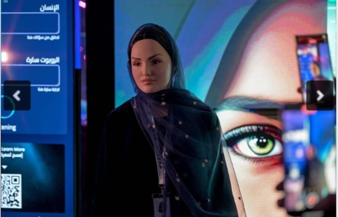 رحب أول روبوت سعودي تحت اسم "سارة" بزوار معرض السعودية الرقمية المشارك في فعاليات مؤتمر "ليب2023" التقني الدولي باللهجة العامية السعودية .