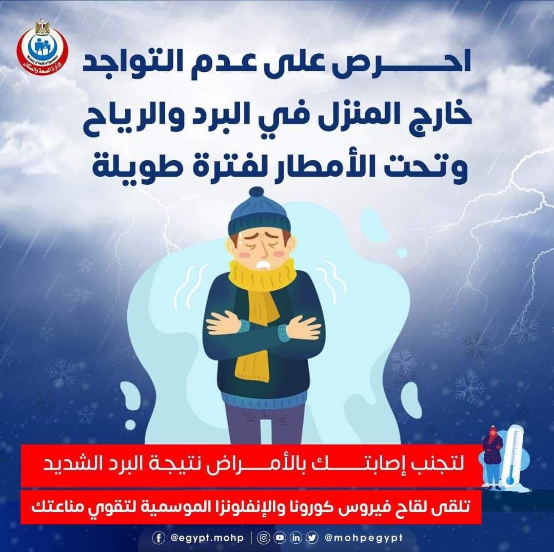 نشرت وزارة الصحة والسكان ، منشورا تحذيريا المواطنين بشأن التلقلبات الجوية وحالة عدم الاستقرار التي تشهدها البلاد .