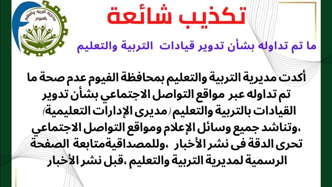 واكدت مديرية التربية والتعليم بالفيوم، ان النتيجة ستعلن من خلال صفحة مديرية التربية والتعليم بالفيوم على الراوبط التالية: