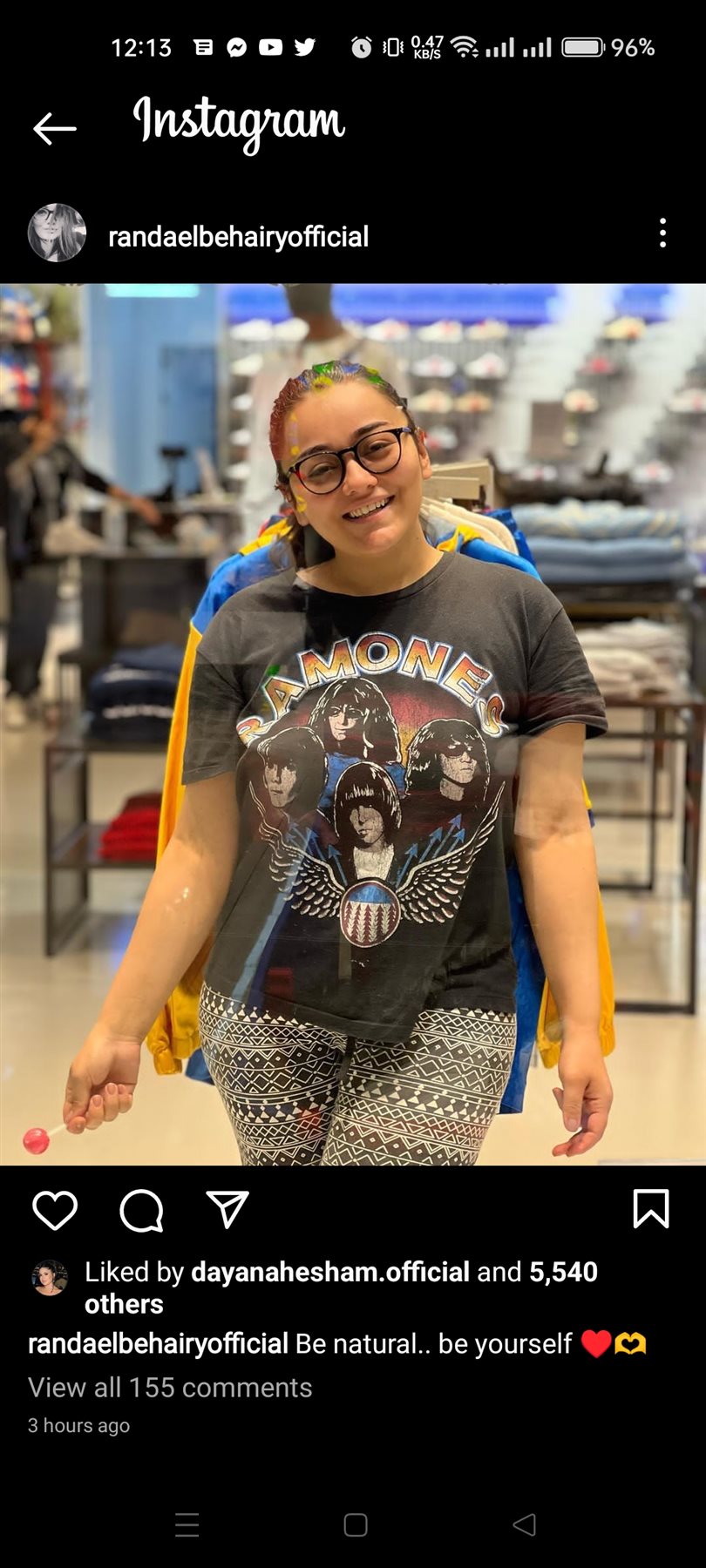 وكتبت راندا" خليك طبيعي، خليك نفسك".