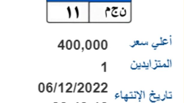 11- ن و ن 6666، تباع بسعر 110 ألف جنيه، وتنتهي المزايدة عليها يوم 7 فبراير.