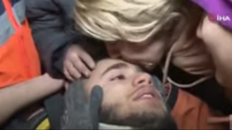 وقال المراسل خلال التغطية إن البناء الذي لم ينهر بشكل كامل انهار ليغطي مستوى القبو ما أدى لحصار ثلاثة شبان سوريين. وأضاف أن أحد هؤلاء الشبان الثلاثة كان قد جاء في ليلة الزلزال من إسطنبول إلى أنطاكيا لعقد قرانه والزواج.