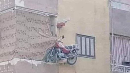 ظهر في مجموعة الصور المنتشرة حاليا بكثرة خاصة عبر موقع “فيسبوك” رفع موتوسيكل في الهواء وكذلك توك توك لجهاز العروسة الموجود في سيارات أسفلهما على الأرض.