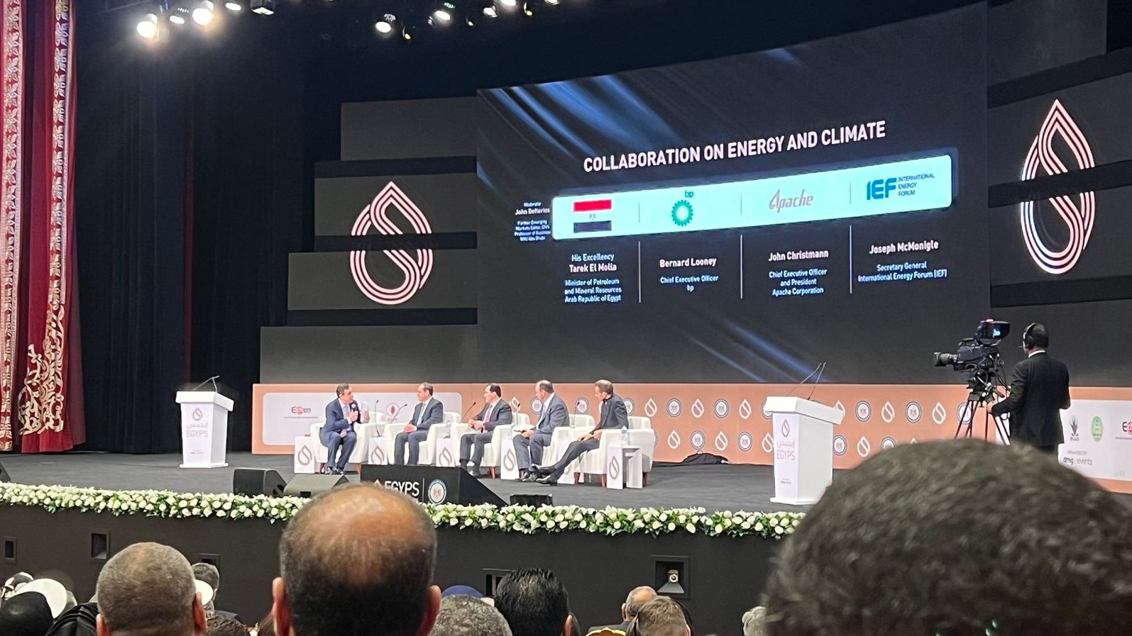 شهد المهندس طارق الملا وزير البترول والثروة المعدنية الجلسة الاستراتيجية الثانية ( إعادة رسم خريطة الطاقة العالمية - تسريع وتيرة التسليم وإنشاء محاور جديدة للسوق ) والتى ضمت جون كريستمان العضو المنتدب ورئيس شركة أباتشى الأمريكية ومنصور الحمد رئيس شركة مبادلة ولورانزو سيمونيللى رئيس شركة بيكر هيوز وماريو ميهرن رئيس شركة فينترسال ديا وأنتونى بريتى رئيس شركة أسبنتك.