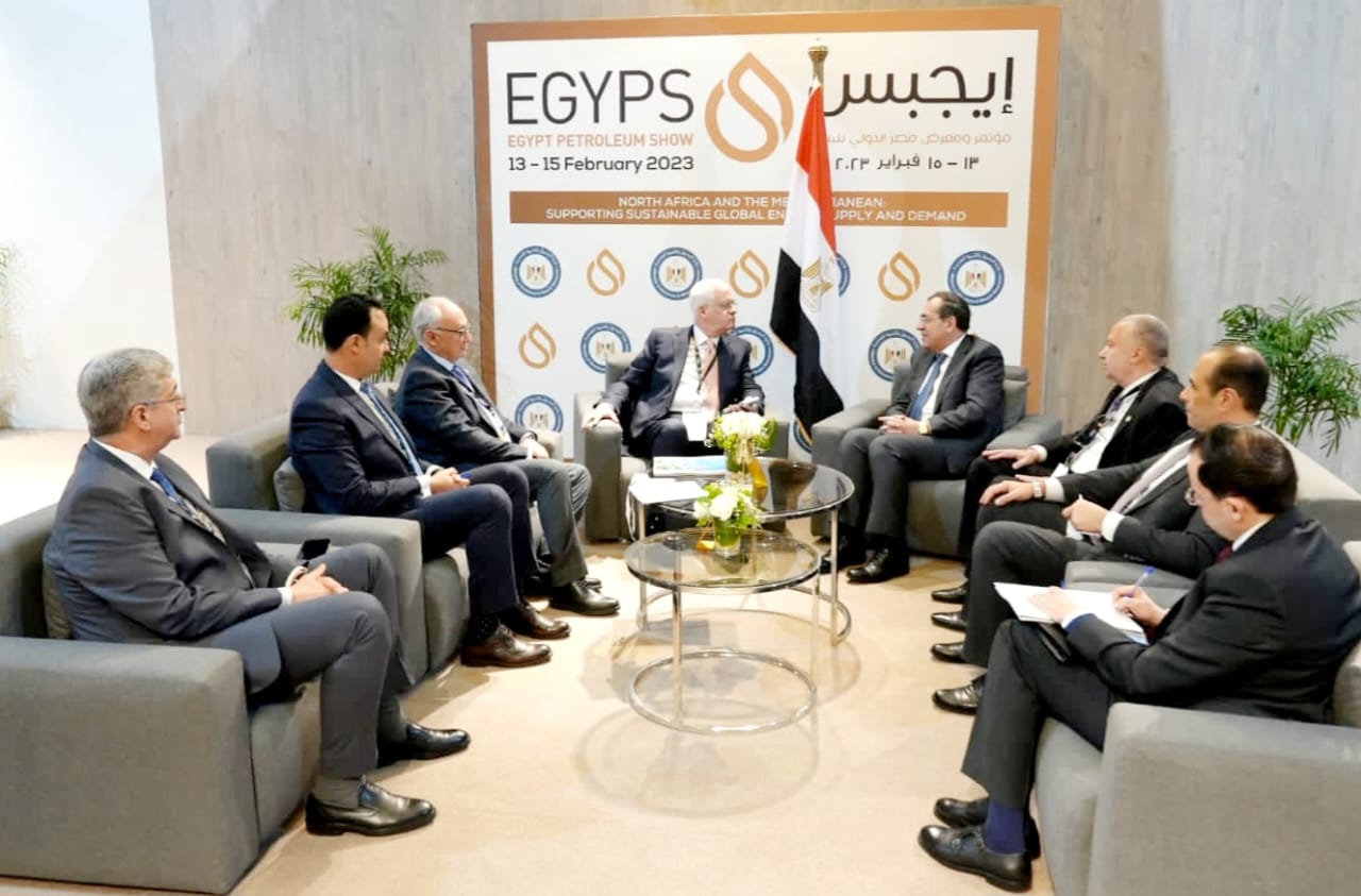التقي المهندس طارق الملا وزير البترول والثروة المعدنية مع ماركو فيلا الرئيس التنفيذي للعمليات بشركة تكنيب انرجيز العالمية بحضور فرانشيسكو كامراتا مدير تكنيب في مصر.