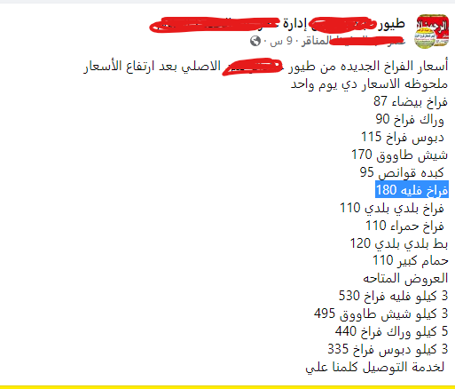 - الدواجن الساسو: 100- 110 جنيهات للكيلو.