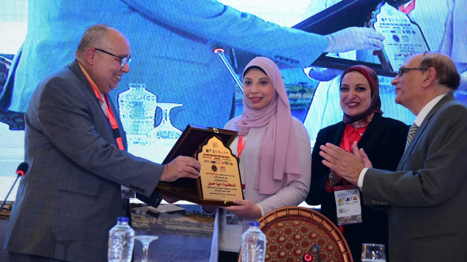 وفي ختام الجلسة قدمت الدكتورة سماح عبد الله درع المؤتمر إلى الدكتور أحمد المنشاوي تقديراً وتكريما له.