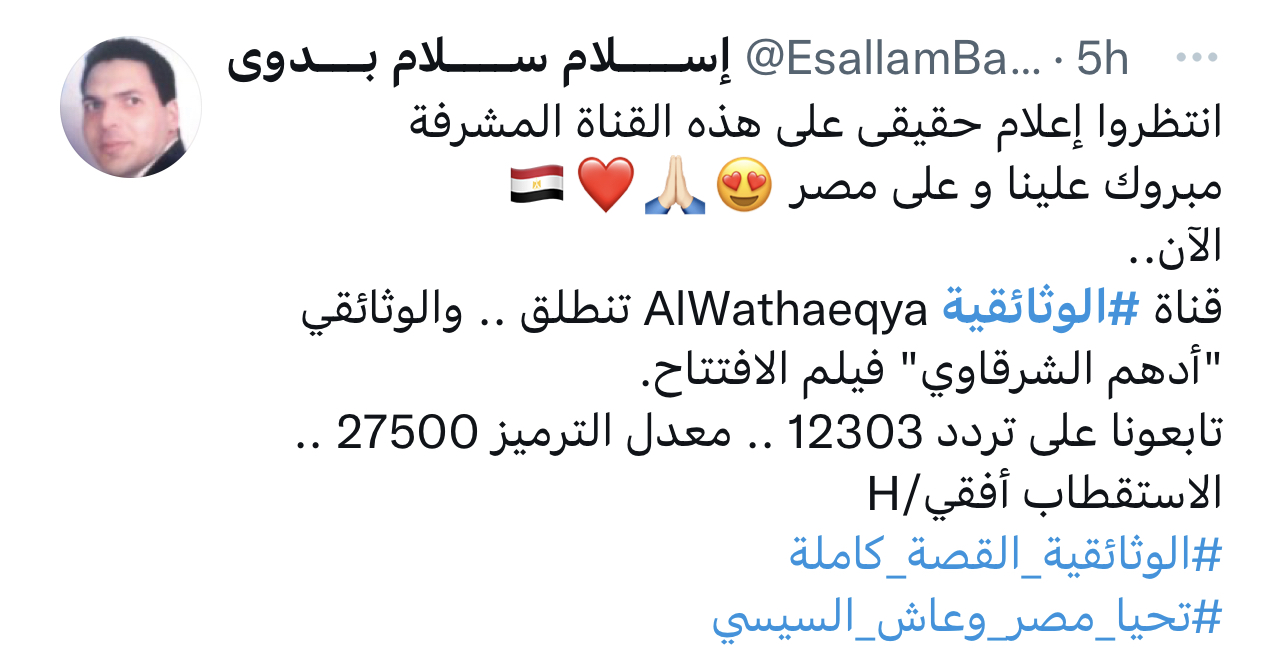 ودشن عدد من رواد السوشيال ميديا هاشتاج “الوثائقية”، عبر حساباتهم الشخصية بموقع التواصل الاجتماعي “تويتر”.