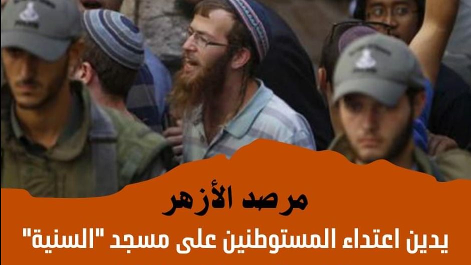 يدين مرصد الأزهر لمكافحة التطرف اعتداء مجموعة من المستوطنين الإرهابيين المنتسبين لجماعة "شبيبة التلال" المتطرفة، على مسجد "السنية" بالحجارة وتحطيم نوافذه وتدمير ساحته الخارجية بمنطقة السهلة الواقعة في البلدة القديمة بالخليل.