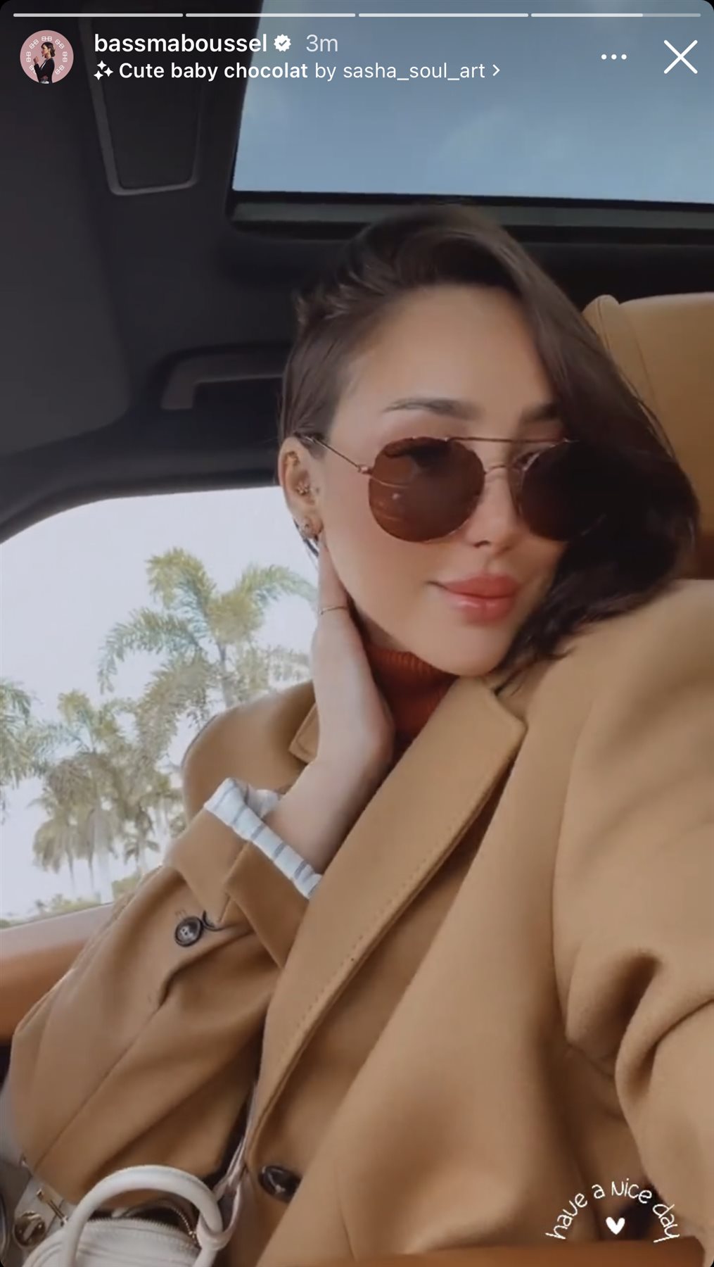 وظهرت بسمة بوسيل عبر خاصية “الاستوري”، مرتدية إطلالة شتوية، واضعة ميك أب يبرز ملامح وجهها.