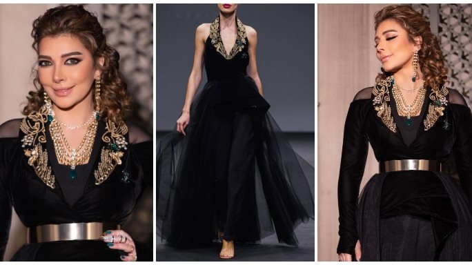 وقامتأسيل عمران، بترك خصلات شعرها السوداء على كتفيها وظهرها بتسريحة انسيابية ناعمة، وهو ما تناسب مع تفاصيل إطلالتها.