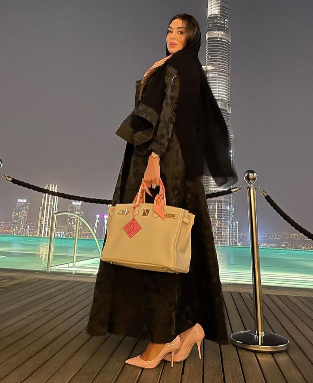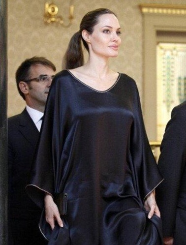 كما تضمنت الصور العديد من الفنانات بالعباءة السوداء منهم نانسي عجرم واحلام ودومنيك والراقصة صافينار وانجلينا جولي.