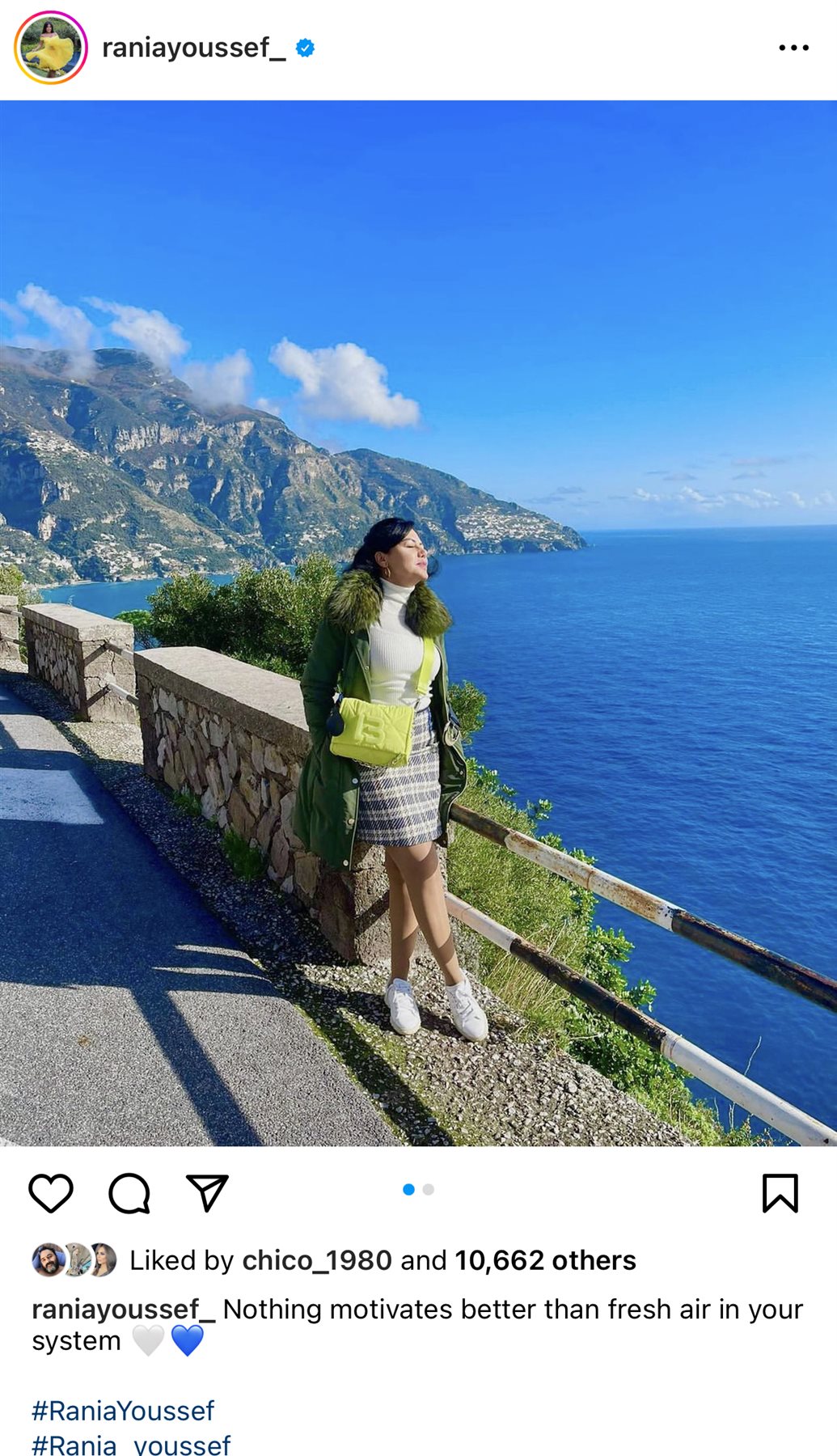 وظهرت رانيا يوسف واقفة أمام البحر، مرتدية جيبة قصيرة مع جاكيت شتوي، ونالت الصور إعجاب عدد كبير من قبل المتابعين.