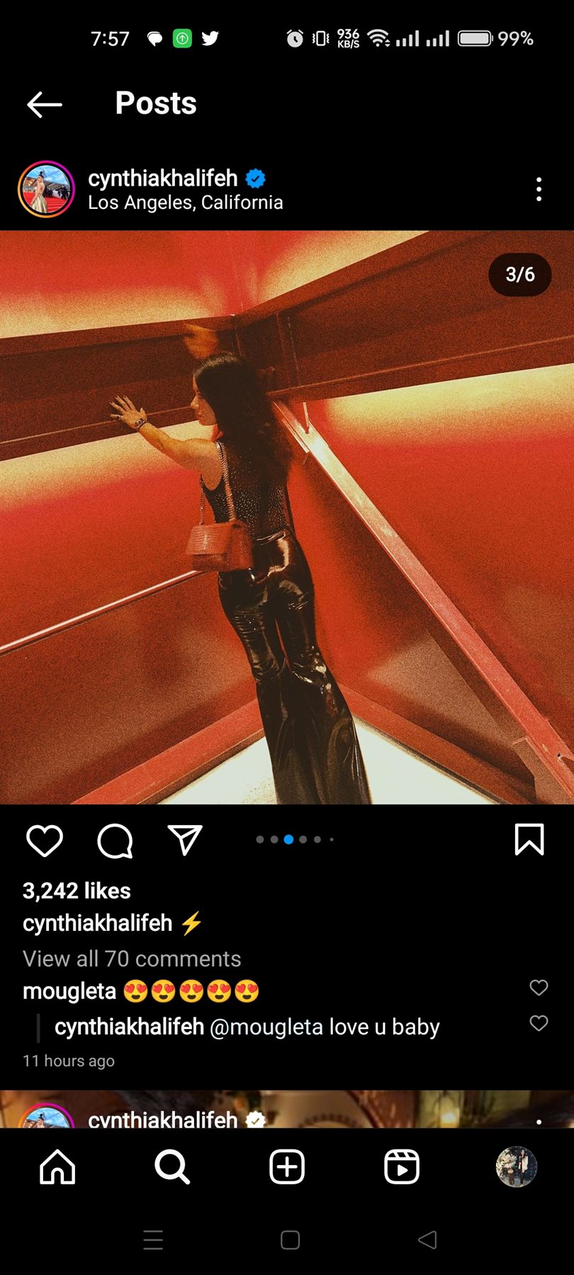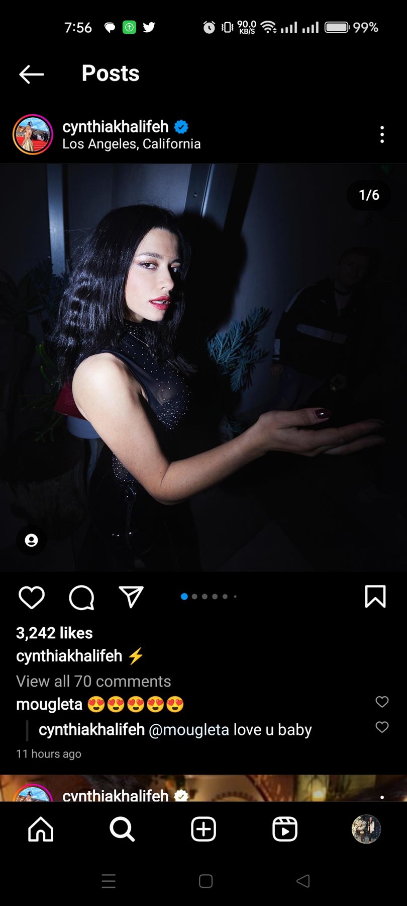 شاركت الفنانة سينتيا خليفة متابعيها صورا جديدة لها عبر صفحتها على موقع التواصل الاجتماعي لتبادل الصور والفيديوهات القصيرة إنستجرام.