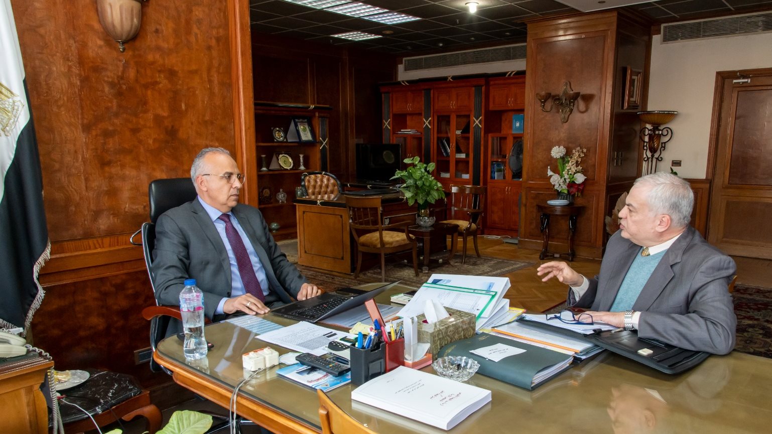 عقد الأستاذ الدكتور هانى سويلم وزير الموارد المائية والري إجتماعاً لمتابعة أنشطة ومشروعات الهيئة المصرية العامة لمشروعات الصرف ، وذلك بحضور كل من الأستاذ الدكتور عصام خليفة رئيس هيئة الصرف ، والمهندس أحمد عبد العزيز بالمكتب الفني للوزير.