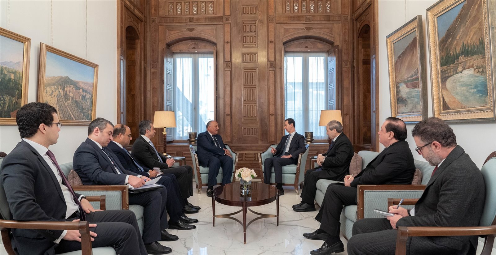 وجاء في بيان صادر عن رئاسة الجمهورية السورية: "نقل وزير الخارجية سامح شكري للرئيس بشار الأسد خلال لقائه به اليوم رسالة من الرئيس عبد الفتاح السيسي أكد فيها تضامن مصر مع سوريا واستعدادها لمواصلة دعم السوريين بمواجهة آثار الزلزال".