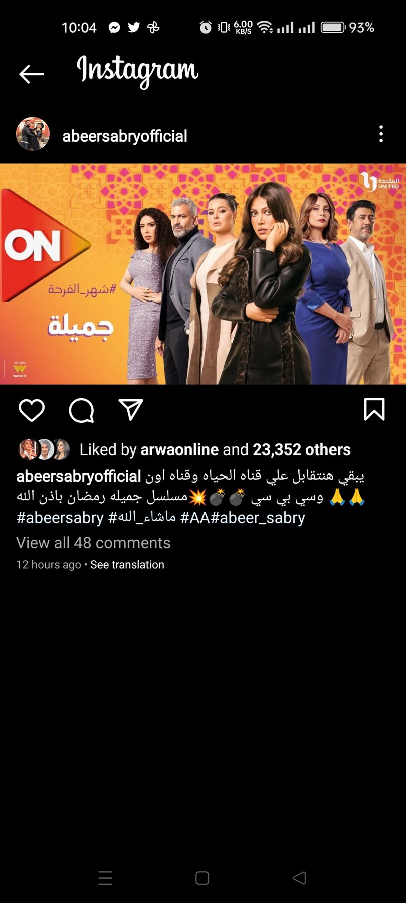روجت الفنانة عبير صبري لـ مسلسلها الجديد “جميلة”والذي من المقرر عرضه في السباق الرمضاني القادم عبر صفحتها الرسمية على موقع التواصل الاجتماعي لتبادل الصور والفيديوهات القصيرة إنستجرام.
