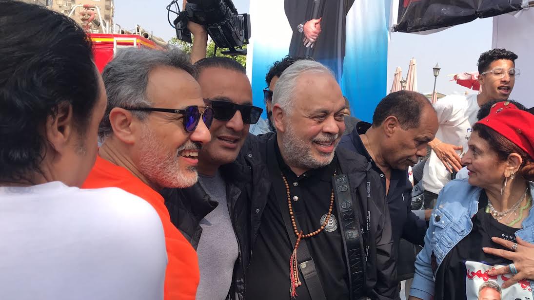 و ظهر لطفي لبيب بعد أزمته الصحية حيث كان يتكأ على اثنين من أبنائه.