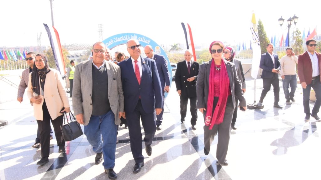 وذلك بحضور الدكتور مصطفى رفعت أمين المجلس الأعلى للجامعات ، والدكتور محمد صقر رئيس أكاديمية البحث العلمى والتكنولوجيا على رأس كوكبة من السادة رؤساء الجامعات المصرية ونواب رؤساء الجامعات لشئون خدمة المجتمع وتنمية البيئة والدكتورة مها كامل غانم نائب رئيس الجامعة لشئون خدمة المجتمع وتنمية البيئة والمشرفة على تنظيم المنتدى والدكتور أحمد عبد المولى القائم بعمل نائب رئيس الجامعة لشئون التعليم والطلاب.