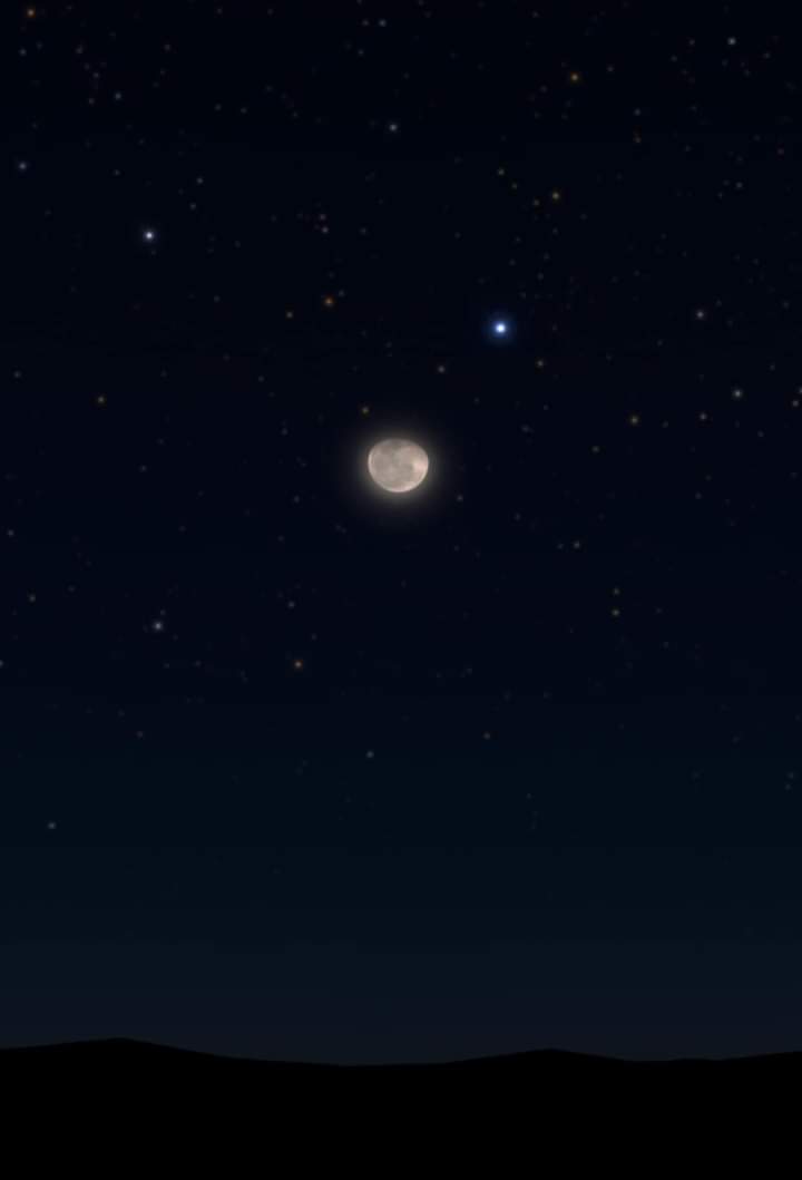 كالمعتاد فإن القمر يكمل دائرة كاملة امام المجموعات النجمية في دائرة البروج في حوالي أربعة أسابيع وسوف يعود ويلتقي نجم السماك الأعزل مرة اخرى في مطلع أبريل المقبل.