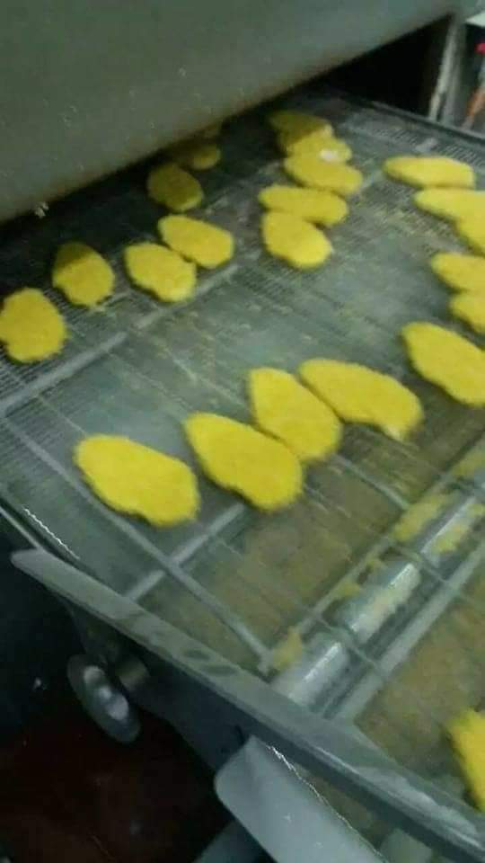 نقلب الفراخ في الخليط ثم نضعه في الماء ثم نضعه مره اخري في الخليط ثم نضعه في الزيت ثم نخرجه عندما تاخذ اللون الذهبي.