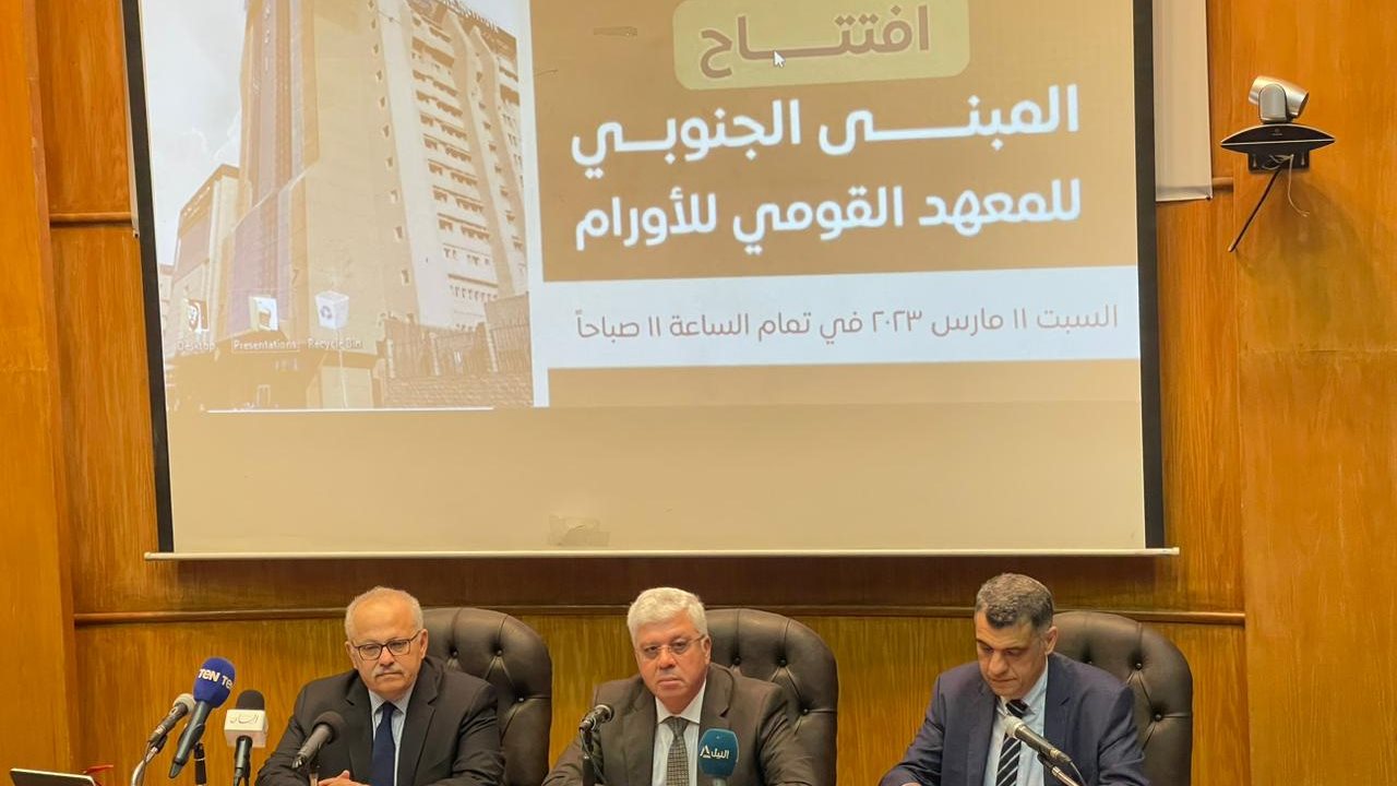 ويفتتح المبنى الجنوبي للمعهد القومي للأورام الدكتور أيمن عاشور وزير التعليم العالي والبحث العلمي، والدكتور محمد عثمان الخشت ورئيس جامعة القاهرة، والدكتور معهد عبد المعطي عميد معهد الأورام والدكتور طارق خيري وكيل المعهد والدكتور حسام عبد الغفار امين المجلس الاعلى للمستشفيات الجامعية.
