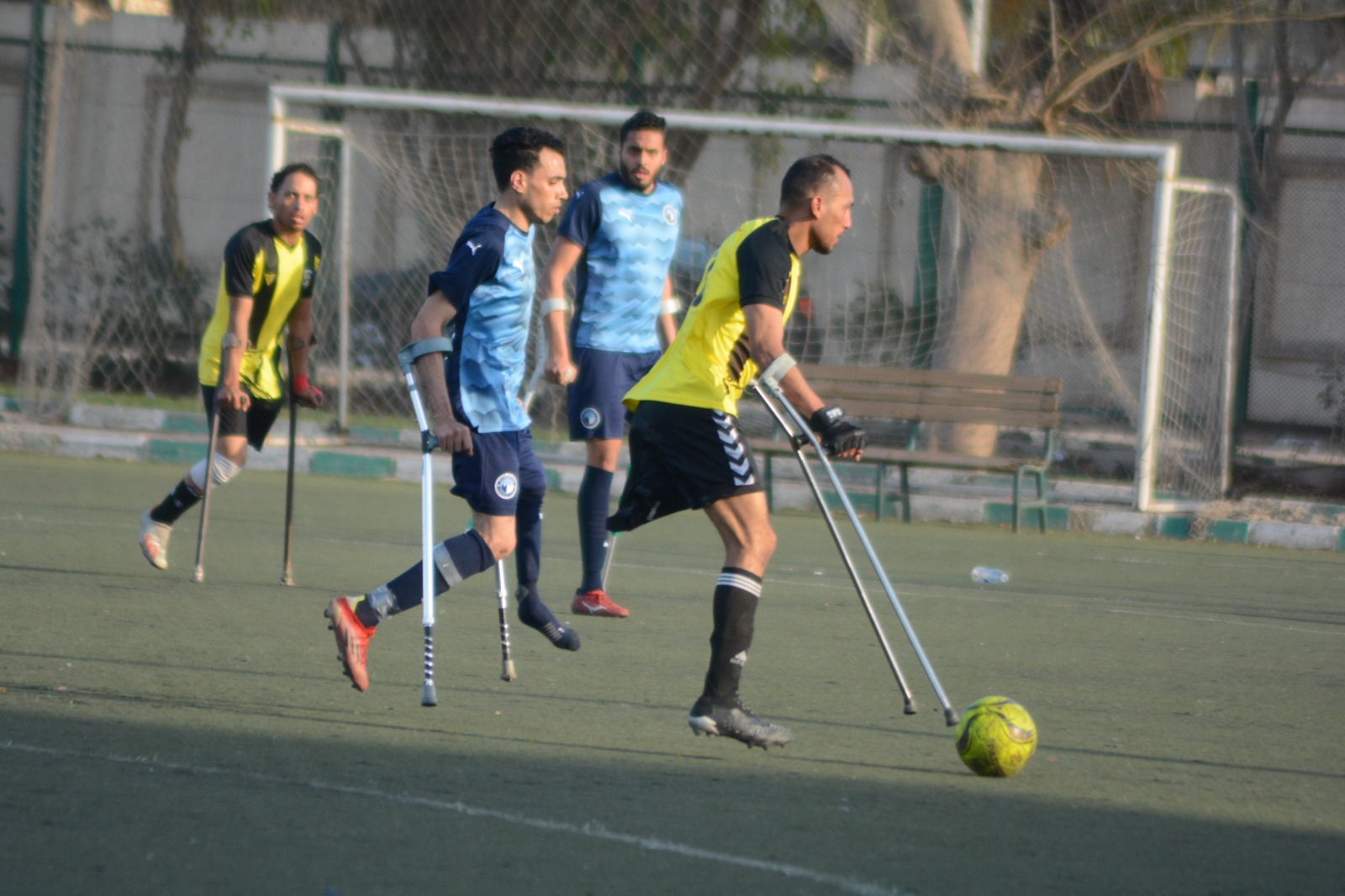 وأوضح عبدالعظيم، أن المشارك لديه بتر في الساق الواحدة وباقي الجسم سليم، وحارس المرمى مشكلة في الذراع، وتتكون اللعبة من شوطين كل شوط 25 دقيقة و10 دقائق استراحة بين الشوطين، ولا يوجد تسلل.