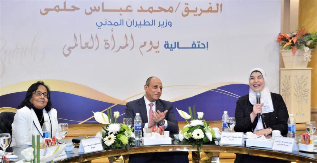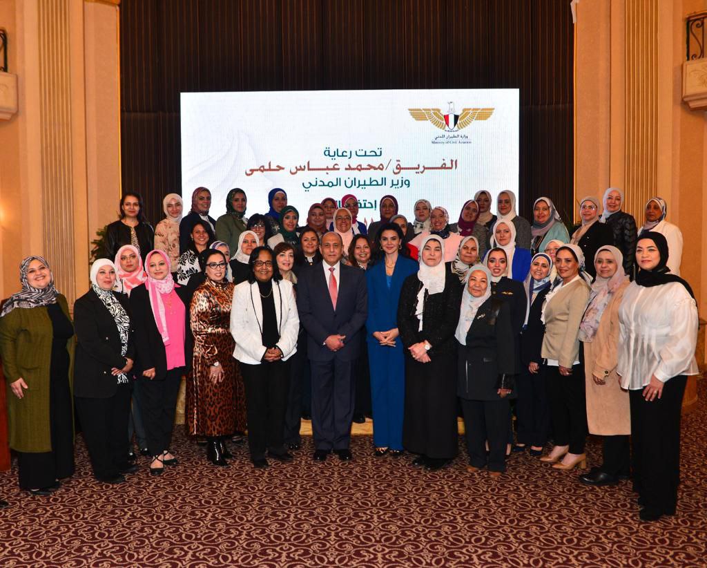 كما أكد وزير الطيران، أن قطاع الطيران يضم العديد من الرموز المتميزة التي تركت بصمات واضحة ومازالت تصنع تاريخًا عريقًا منذ نشآة الطيران المدني المصري حيث كانت من بينهن كابتن " لطفية النادى" أول مصرية تحصل على إجازة طيار خاص عام 1933 م وثاني مصرية على مستوى العالم تقود طائرة وكذلك كابتن عزيزة محرم أول أمرأة مصرية تتقلد منصب كبير معلمين بمصر للطيران عام1957،، وهناك الكثير من السيدات المصريات اللائى أثبتن مهاراتهن وحققن حلم الطيران.
