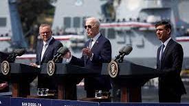 وكان كل من الرئيس الأمريكي، جو بايدن، ورئيس وزراء بريطانيا، ريشي سوناك، ورئيس وزراء أستراليا، أنتوني ألبانيز، قد عقدوا يوم الأثنين، لقاء ثلاثي بخصوص صفقة الغواصات النووية الأمريكية إلى أستراليا.