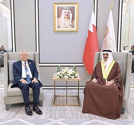 التقى المستشار الدكتور حنفي جبالي رئيس مجلس النواب، أحمد بن سلمان المسلم رئيس مجلس النواب البحريني، وذلك على هامش المشاركة في اجتماعات الجمعية ١٤٦ للاتحاد البرلماني الدولي المنعقدة حالياً في مملكة البحرين.