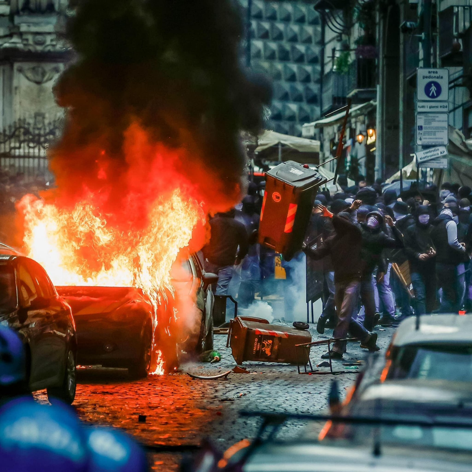 اندلعت اشتباكات في مدينة نابولي اليوم الأربعاء قبل مواجهة نابولي وأينتراخت فرانكفورت في إياب دور الستة عشر بدوري أبطال أوروبا لكرة القدم إذ أضرم مشجعون ألمان، النار في سيارة شرطة وألقوا حجارة على حافلات في وسط المدينة.