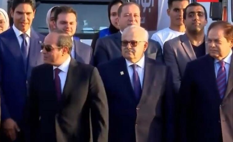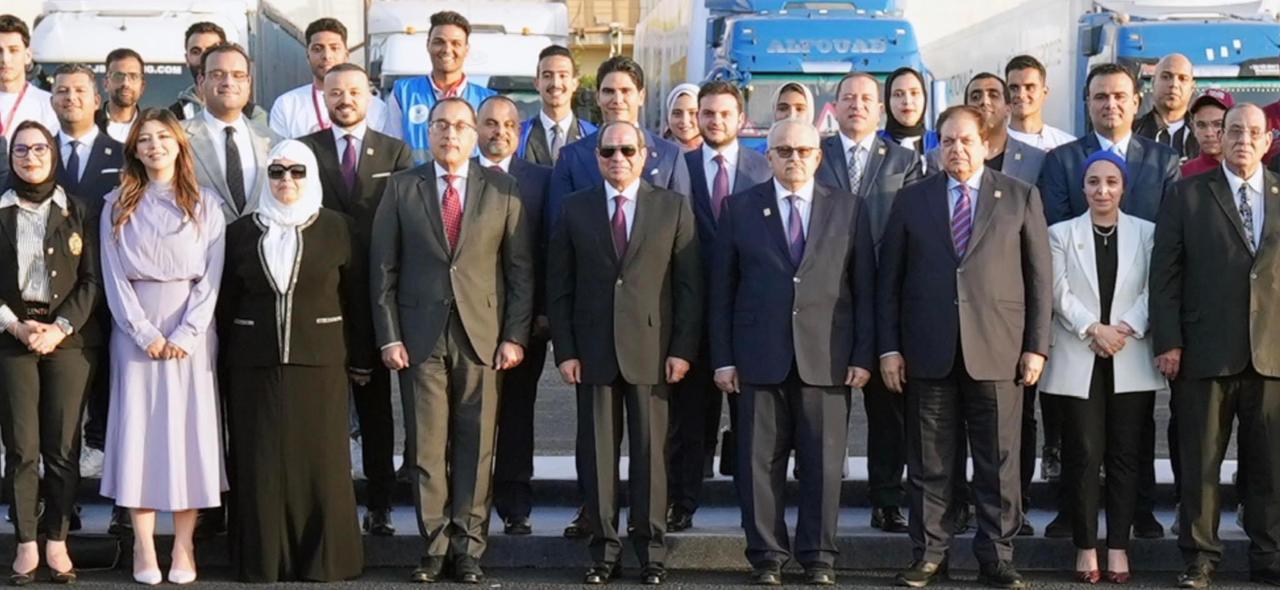 شارك الرئيس عبد الفتاح السيسي،في صورة جماعية مع متطوعي التحالف الوطني للعمل الأهلي التنموي، بمجرد وصوله لاستاد القاهرة ، مقر احتفالية كتف في كتف.