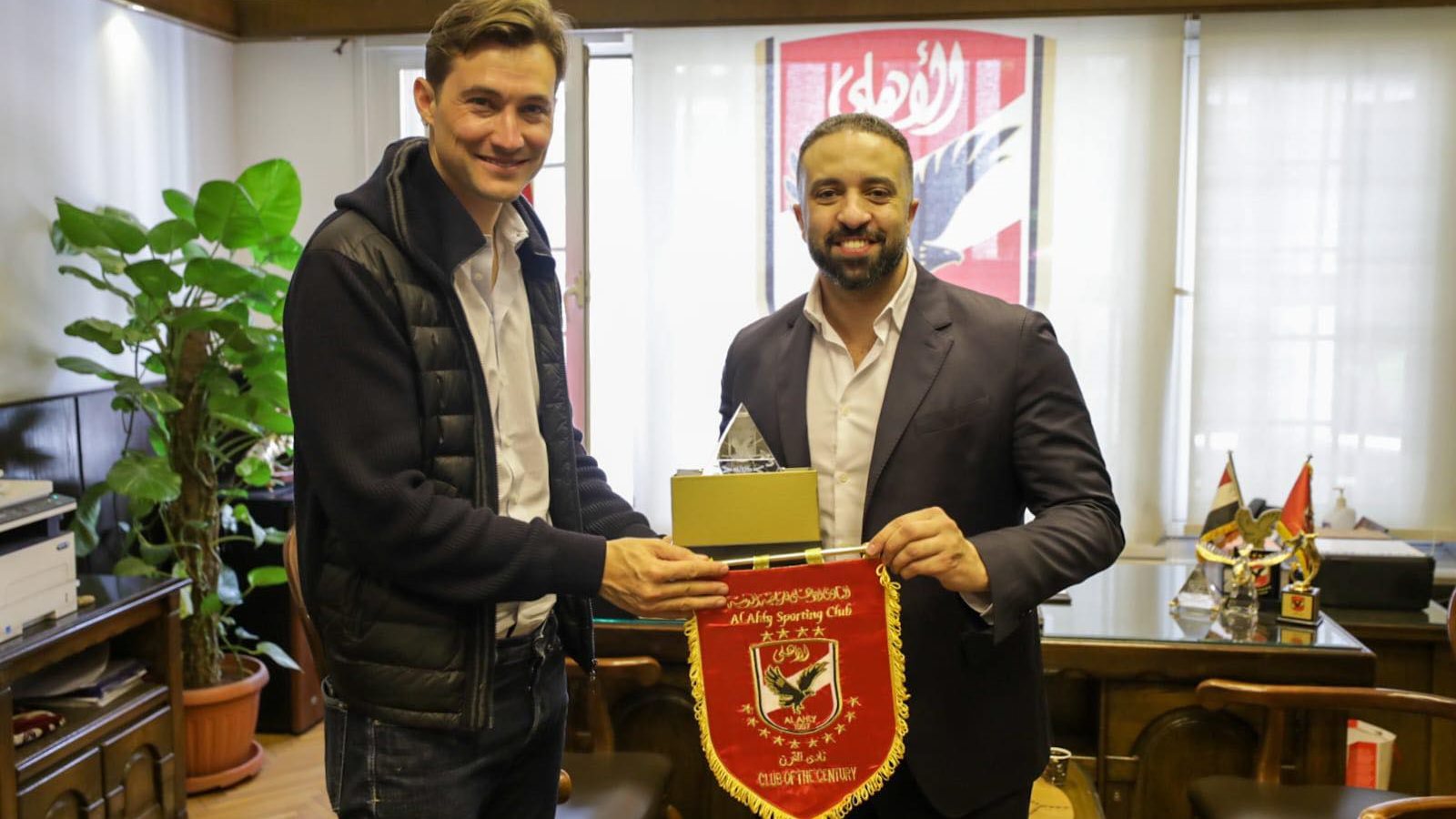 وفي ختام زيارته قام المهندس سراج الدين بإهداء درع وعلم الأهلي إلى هاربرج، الذي عبر عن اعتزازه وتقديره الكامل للعلاقة التي تربط الناديين.