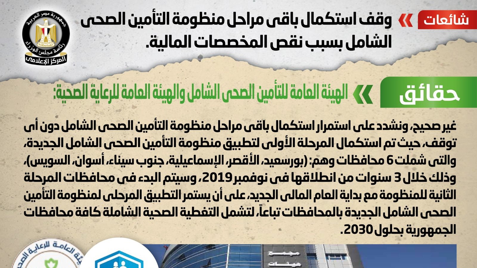نص قانون نظام التأمين الصحي الشامل، علي أن تشمل خدمات النظام مجموعة الخدمات الصحية التأمينية لكافة الأمراض التي تقدم للمؤمن عليهم داخل جمهورية مصر العربية، سواء كانت خدمات تشخيصية أو علاجية أو تأهيلية أو فحوصات طبية أو معملية، وللهيئة بناءً على عرض اللجان المختصة بها إضافة خدمات أخرى إلى الخدمات المشار إليها، وذلك بمراعاة الحفاظ على التوازن المالي والاكتوارى للنظام.