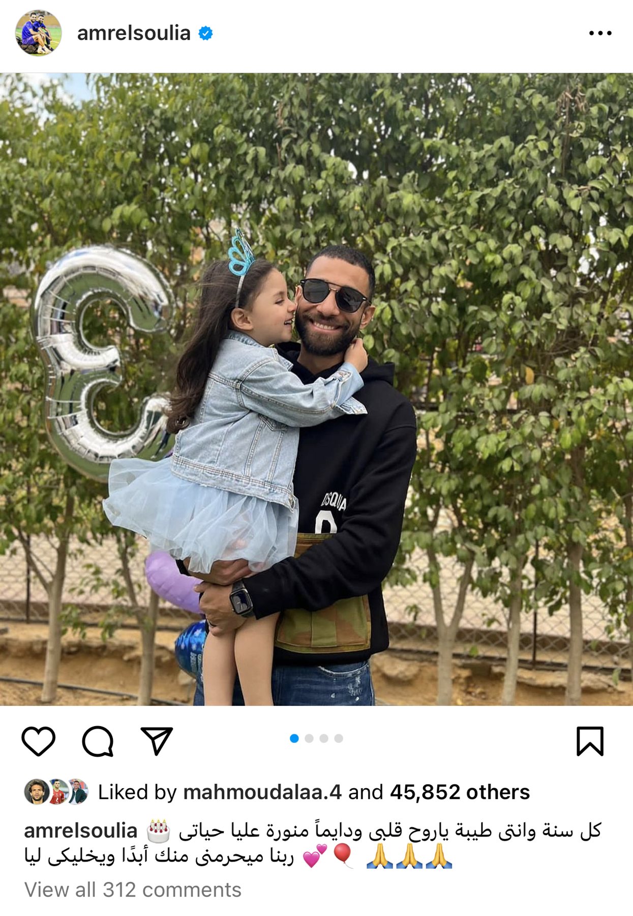 احتفل عمرو السولية، لاعب نادي الأهلي، بعيد ميلاد ابنته الصغيرة، عبر حسابه الشخصي بموقع التواصل الاجتماعي “إنستجرام”.